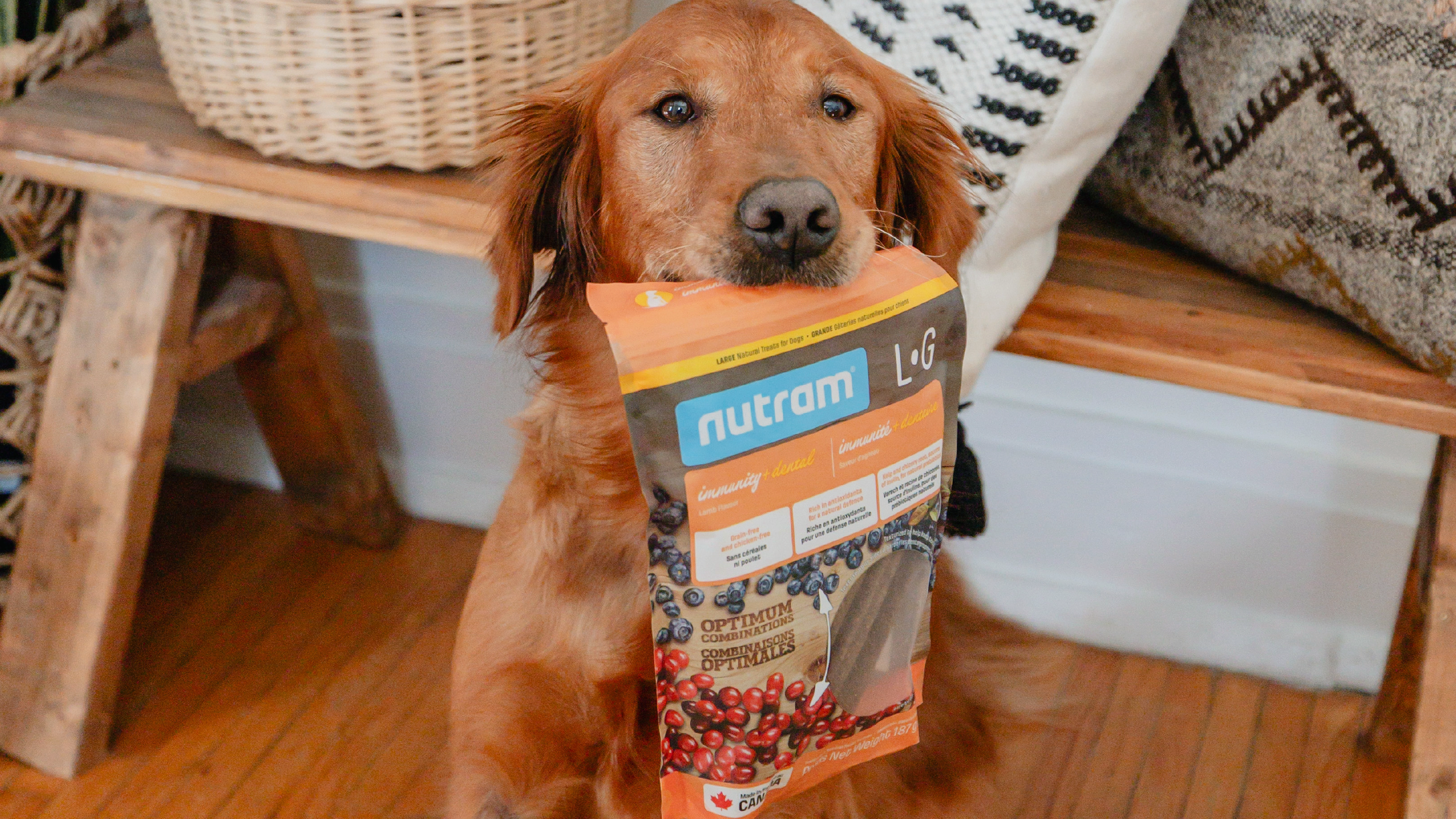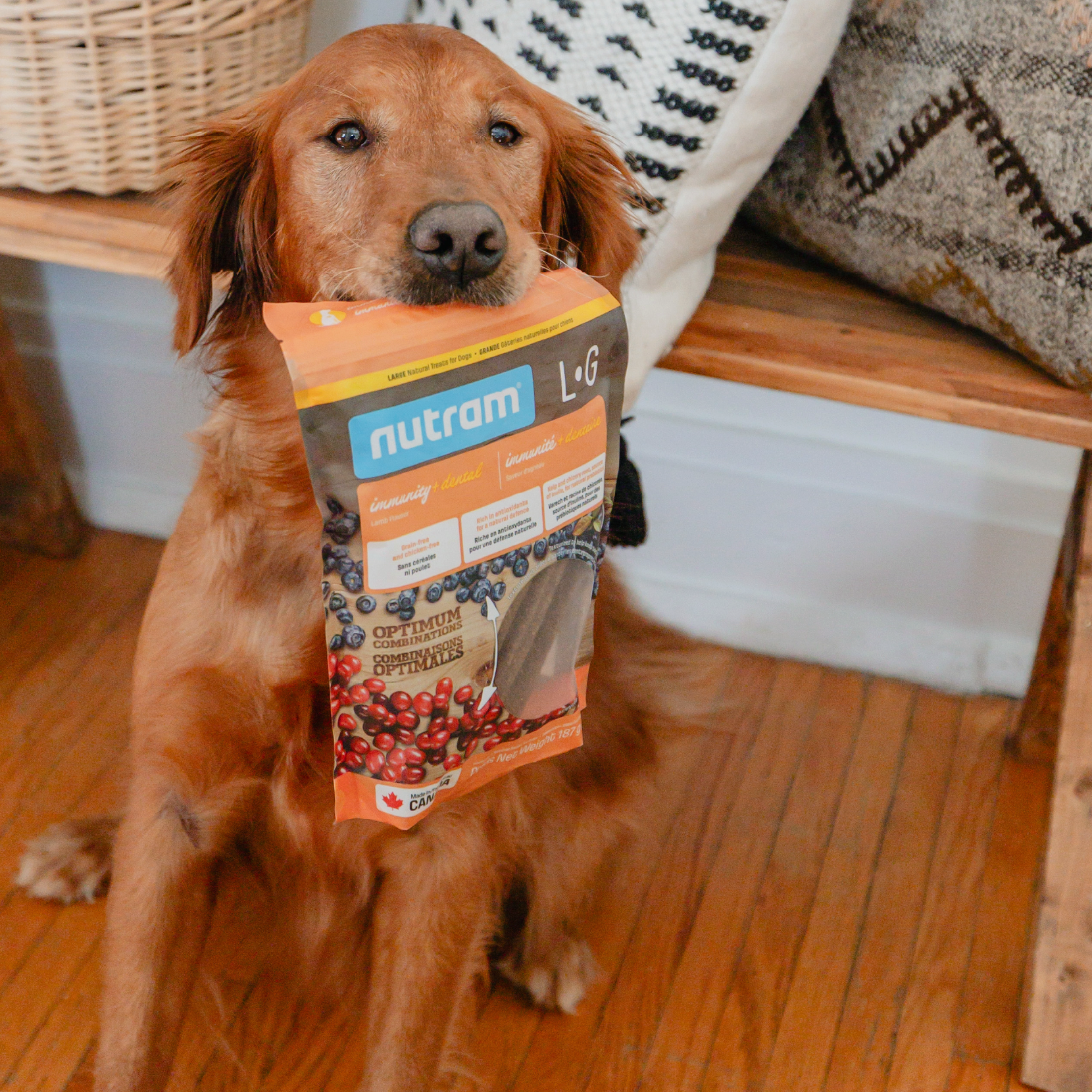 Les gâteries Cognitive+ dentaire de Nutram aident à favoriser le développement cognitif de votre chien.