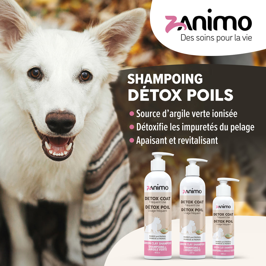 absorbant et désodorisant agit dès le premier lavage, laissant le pelage doux et soyeux.