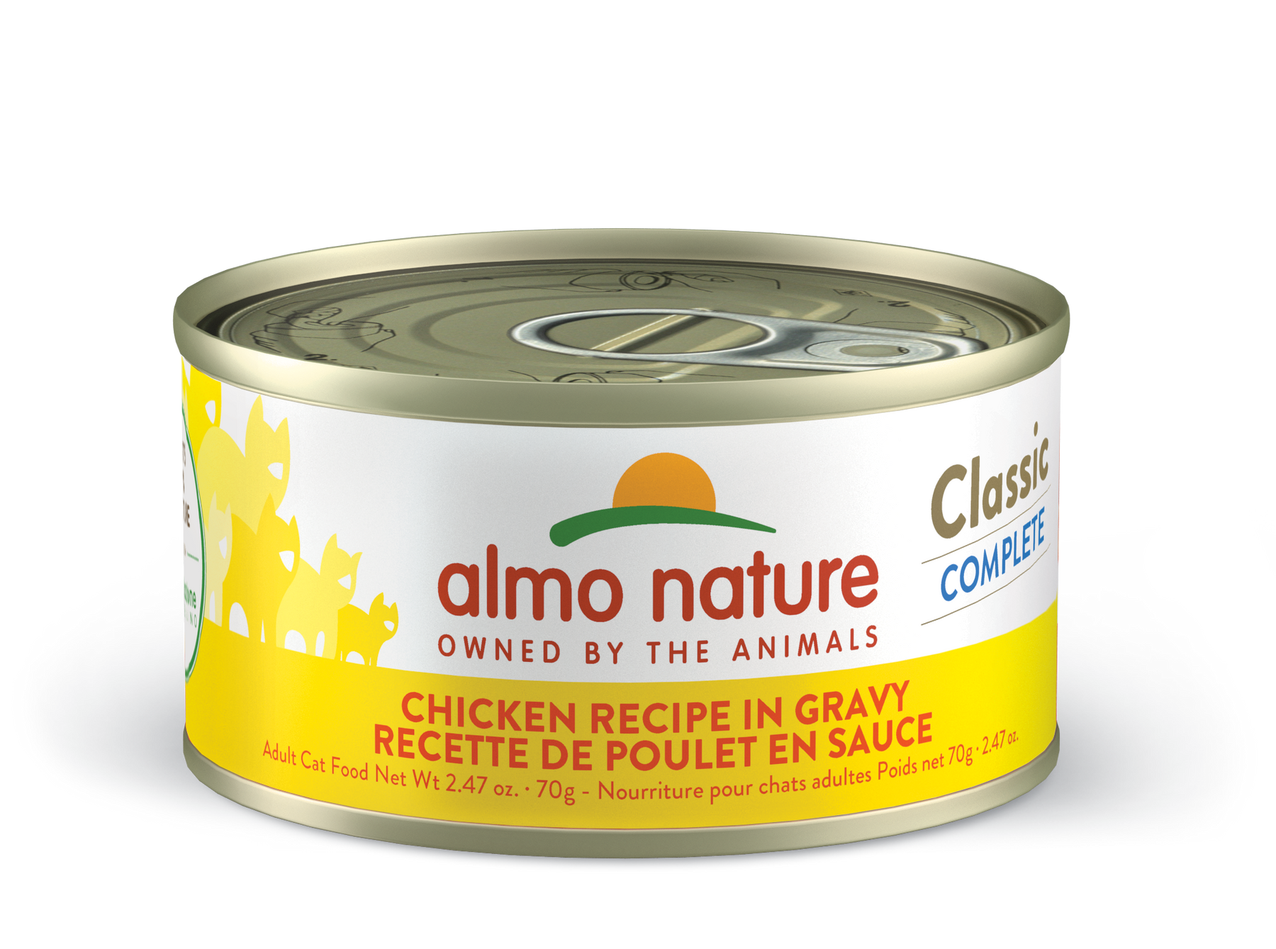 Nourrissez le chat avec 3 boîtes d'Almo Nature Classic Complete par tranche de 8 lb (4 kg) de poids corporel. Ajustez la quantité en fonction du niveau d'activité du chat