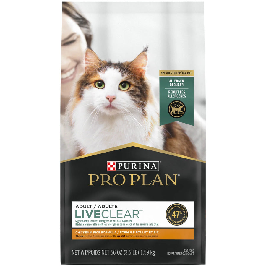 Maîtrisez les allergènes de chat dans votre maison en nourrissant votre félin avec la nourriture sèche pour chats adultes Purina Pro Plan LIVECLEAR – Formule Poulet et riz. Première formule de ce genre, cette nourriture pour chats réduisant les allergènes neutralise simplement et en toute sécurité le Fel d 1, un allergène commun dans la salive du chat, au moyen d’une protéine importante provenant des œufs. Ces croquettes savoureuses avec du poulet comme premier ingrédient fournissent les protéines dont ont besoin les chats pour avoir des muscles solides. Cette formule de nourriture sèche pour chats adultes est enrichie d’une quantité garantie de probiotiques vivants permettant de favoriser la santé du système digestif et du système immunitaire. Découverte grâce à plus d’une décennie de recherche, la formule LIVECLEAR permet de réduire les allergènes de 47 %, en moyenne, dans le poil et les squames de chat dès la troisième semaine d’alimentation. Nous avons tellement confiance en LIVECLEAR, que nous offrons une garantie de remboursement. Remplissez le bol de votre chat avec cette nourriture révolutionnaire réduisant les allergènes, qui fait partie de la gamme de formules SPECIALIZED de Purina Pro Plan.