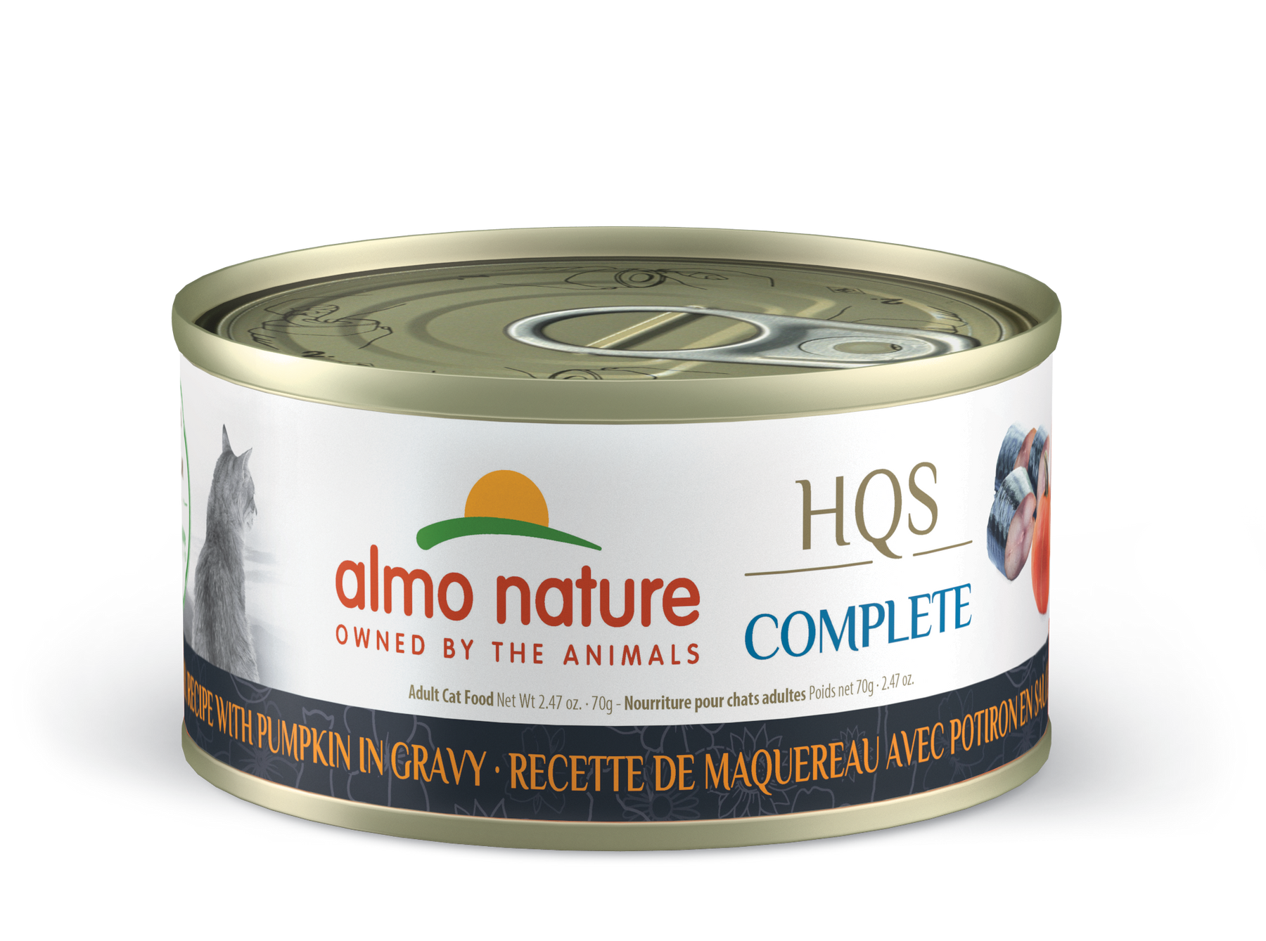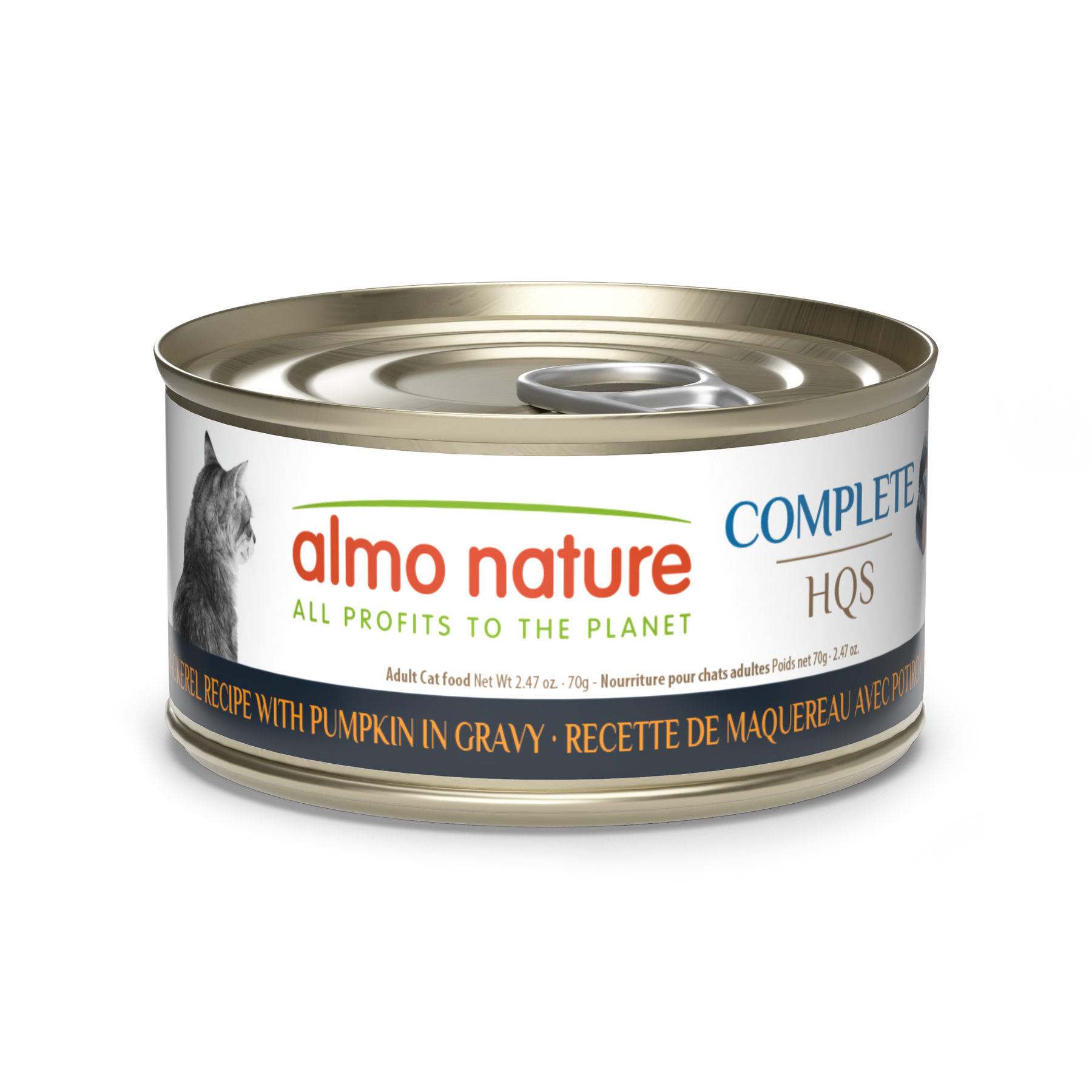 Log in to earnWatch your furry friend thrive with Almo Nature’s HQS Complete Mackerel with Pumpkin Grain Free Canned Cat Food. Cooked in a savory sauce with real, all-natural flaked mackerel with pumpkin, this preservative-free recipe is sure to please the inner tiger in every cat (even the most finicky)! You’ll be happy to know that it’s made with HQS (High Quality Sourced) ingredients (meat or fish that was once fit for human consumption but is now only used for pet food), meaning it’s a naturally rich source of highly digestible protein, essential amino acids, and micronutrients—enough to meow! Providing complete and balanced nutrition, it’s the perfect daily meal to keep your feline friend healthy. Plus, HQS Complete comes in a wide variety of flavors to rotate, all with meat or fish as the first ingredient.