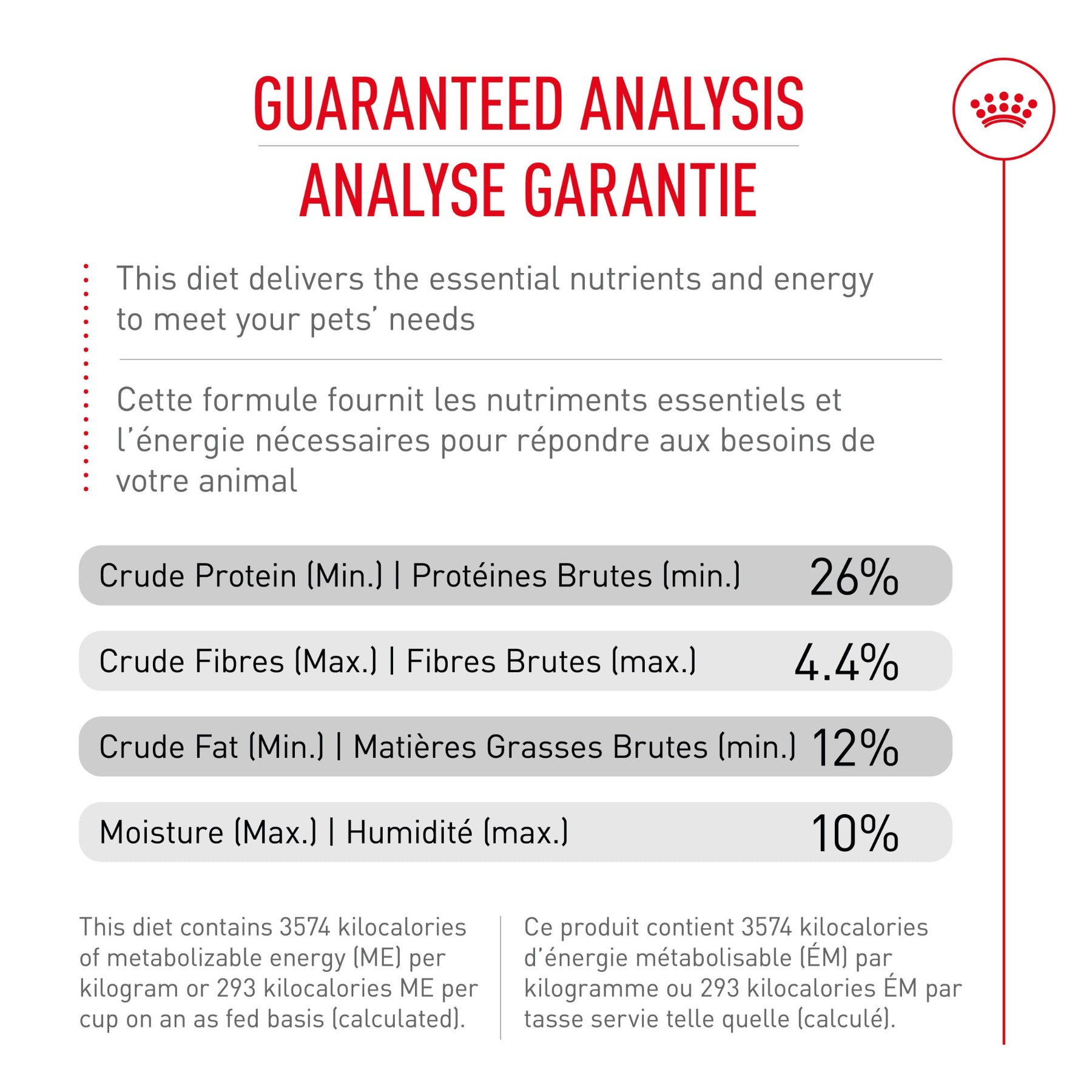 Broken rice, chicken by-product meal, brown rice, wheat gluten, oat groats, chicken fat, natural flavors, dried regular beet pulp, fish oil, cellulose powder, salt, vegetable oil, sodium silicoaluminate, calcium carbonate, potassium chloride, fructooligosaccharides, sodium tripolyphosphate, L-lysine, vitamins [DL-alpha-tocopherol acetate (source of vitamin E), inositol, niacin supplement, L-ascorbyl-2-polyphosphate (source of vitamin C), calcium D-pantothenate, biotin, pyridoxine hydrochloride (vitamin B6), riboflavin supplement, thiamine mononitrate (vitamin B1), vitamin A acetate, folic acid, vitamin B12 supplement, vitamin D3 supplement], taurine, choline chloride, marigold extract (Tagetes erecta L.), glucosamine hydrochloride, trace elements [zinc proteinate, zinc oxide, iron sulfate, manganese proteinate, manganous oxide, copper sulfate, calcium iodate, sodium selenite, copper proteinate], tea, L-carnitine, chondroitin sulfate, rosemary extract, preserved with a mixture of tocopherols and citric acid.